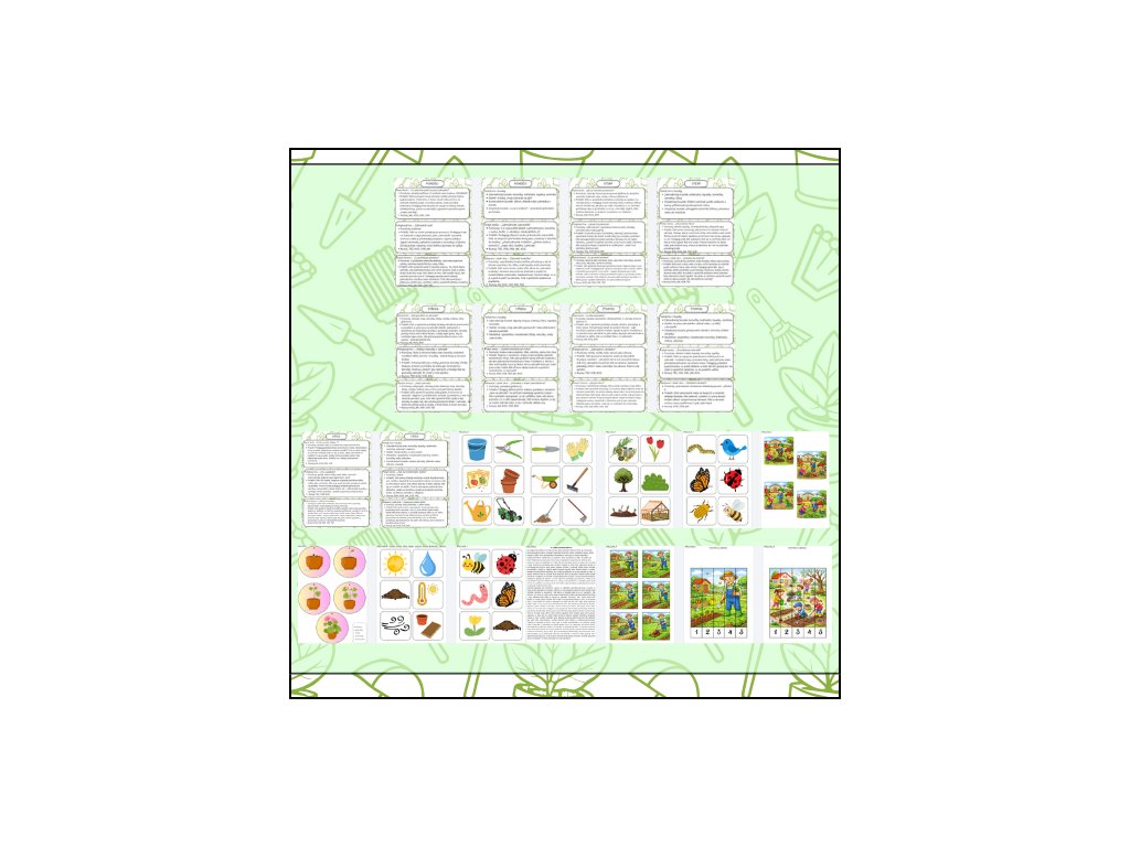 Týdenní tematická příprava „Jaro na zahradě“ vede děti k tomu, aby zahradu nevnímaly jen jako místo venku, ale jako živý prostor plný změn, práce, růstu a objevování. Děti se během týdne seznamují s tím, co na zahradě na jaře roste, co potřebuje semínko ke klíčení, kdo zahradě pomáhá a co všechno dělá zahradník. Téma je postavené na smysluplných aktivitách, které propojují badatelské činnosti, praktické zkušenosti, pohyb, smysly, jazyk i tvoření. Děti zkoumají semínka, hlínu, zahradní pomocníky, pracují s reálnými pomůckami a učí se přemýšlet o tom, co rostliny potřebují, aby mohly růst. Nechybí pokusy, práce s přírodninami, pohádka s rozborem ani reálné zahradnické činnosti, které dětem dávají jasný smysl.