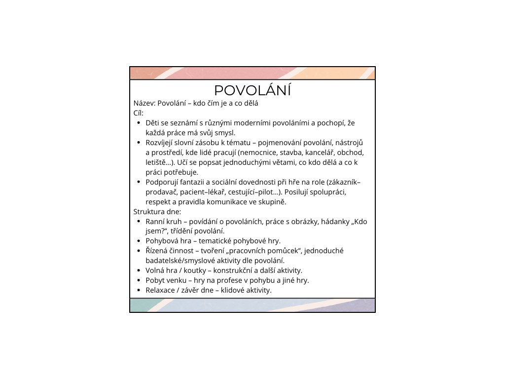 ✅ Ideální jako tematický týden, kdy děti povolání opravdu prožijí hrou, pohybem i tvořením.