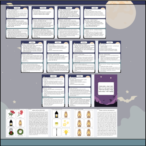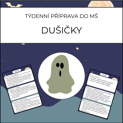 🕯️ Podzimní čas přináší chvíle klidu, světýlek a vzpomínek. Malé svíčky září na hrobech a věnečky zdobí tato místa, kde lidé vzpomínají. Tento digitální materiál „Dušičky“ vám nabídne ucelený program na celý týden, díky kterému děti hravou a citlivou formou poznají podzimní tradici Dušiček – Památky zesnulých.