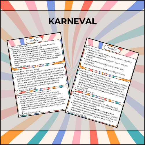 ✅ Ideální pro karnevalové období – děti téma opravdu prožijí pohybem, hudbou, tvorbou i společným „karnevalovým dnem“.