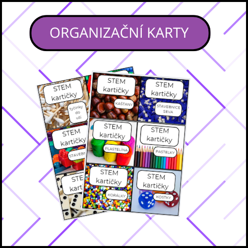• Karty, které můžete nalepit na krabičky od daných předmětů, z kterých budou děti konstruovat – organizační karty. Tyto karty mohou být také losovány a podle toho pak děti budou konstruovat.