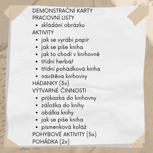 Máte téma Kniha, můj kamarád, nebo podobné téma? Využijte vzdělávací zásobník plný vzdělávacích a rozvíjejících aktivit!