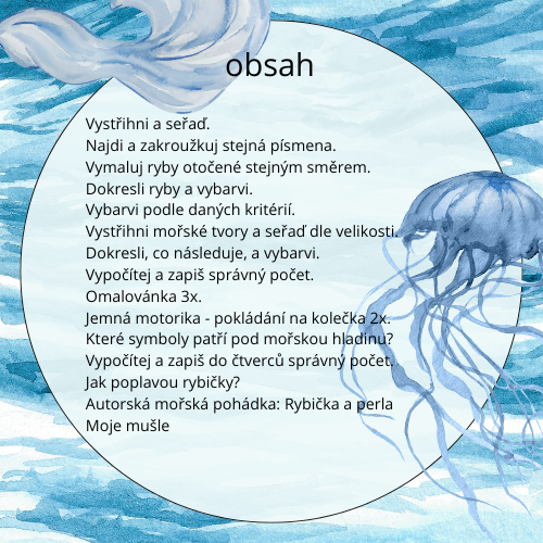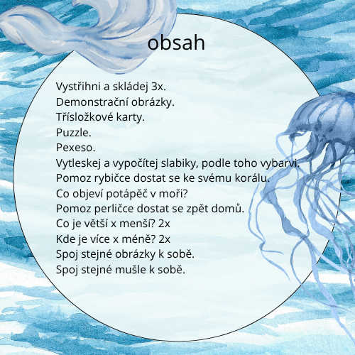 Soubor PDDF o celkem 55 stranách připraven rovnou k tisku a plný hravých pracovních listů a aktivit s motivem mořského světa. Najdete zde: