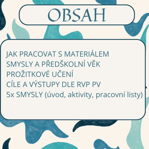 Na 68 stranách tedy najdete úvod, teoretické vymezení a pět smyslů (u každého úvodní strana s motivací a demonstračními obrázky, 21 aktivit na praktických kartách, 3 pracovní listy a sebereflexe).