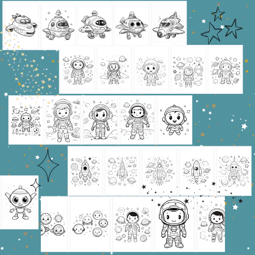 Tento soubor PDF obsahuje celkem 57 omalovánek určených k tisku na A4 (vhodné tak i pro děti mladšího předškolního věku). Všechny jsou vesmírně laděné a můžete si tak vytisknout vesmírnou raketu, astronauta, či planetky.