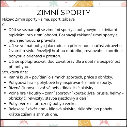 ❄️ ZIMNÍ SPORTY – TÝDENNÍ PŘÍPRAVA DO MŠ