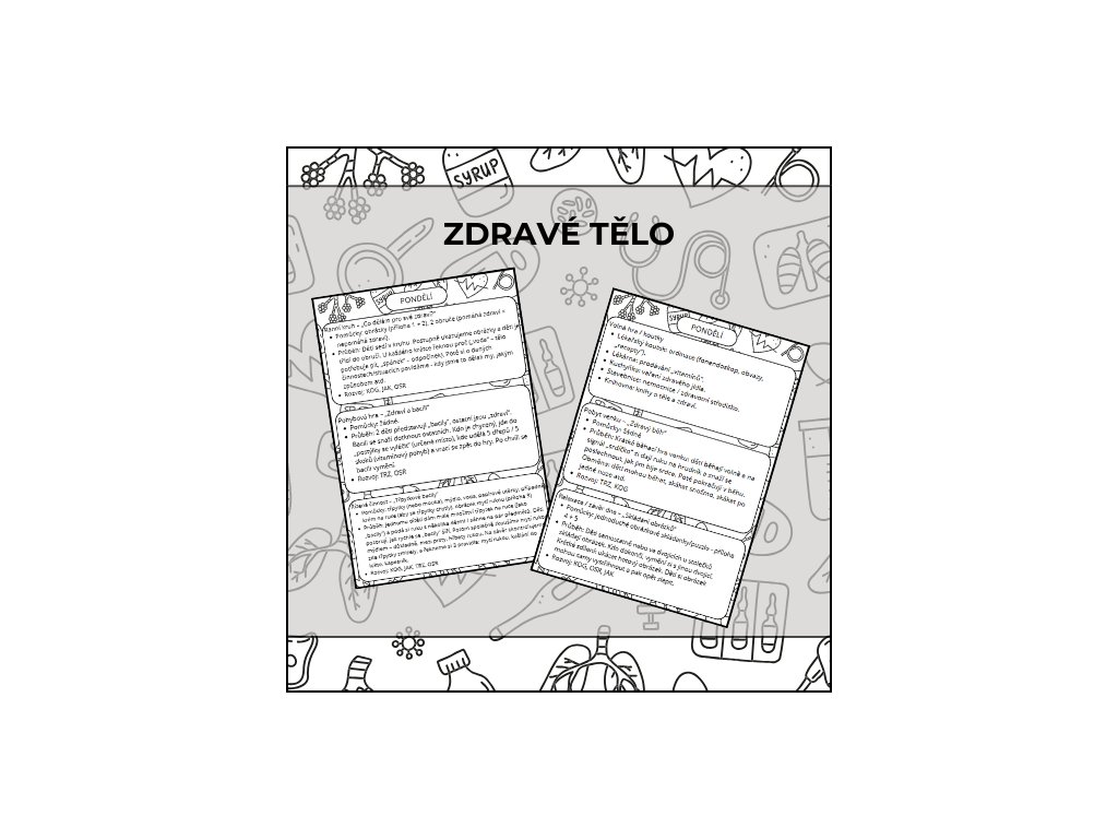 Zdraví není samozřejmost – a děti to potřebují poznat přirozeně, jednoduše a hlavně prakticky. Digitální materiál „Zdravé tělo“ provede děti celým týdnem, ve kterém si hravou formou upevní základní hygienické návyky, pochopí, proč se myjí ruce, jak se chovat při rýmě a kašli a jak o své tělo pečovat tak, aby se cítily dobře. Téma je postavené na běžných situacích ze školky a domova, takže aktivity dávají smysl a děti si je snadno spojí s realitou.