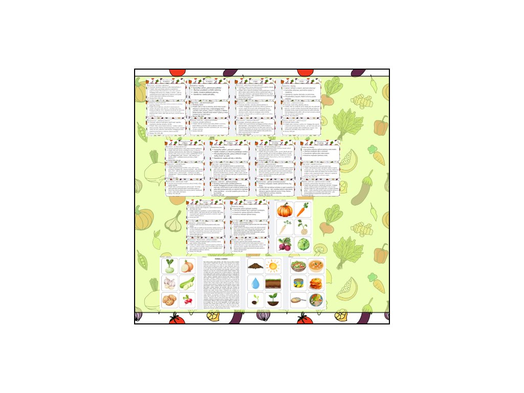 Pohybové hry – sázíme a sklízíme, zeleninová polévka, trh se zeleninou, zeleninová štafeta, hledej svou zeleninu.