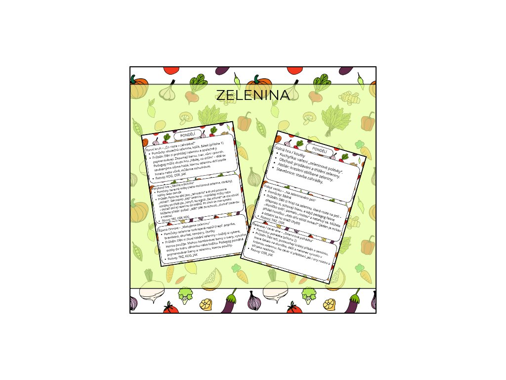 Podzimní zahrádka hraje všemi barvami – červená rajčata, oranžové mrkve, zelené okurky i fialové řepy. Tento digitální materiál „Zelenina“ vám nabídne ucelený program na celý týden, díky kterému děti hravou formou poznají různé druhy zeleniny, naučí se, kde roste, k čemu je důležitá a proč je zdravé ji jíst. Každý den přináší jiné objevování – smyslové hry, pohyb, tvoření i ochutnávky, které rozvíjejí všechny dětské smysly, poznání i vztah k přírodě.