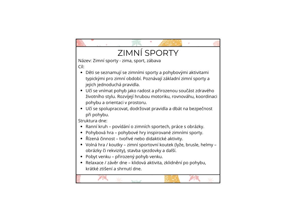 ❄️ ZIMNÍ SPORTY – TÝDENNÍ PŘÍPRAVA DO MŠ
